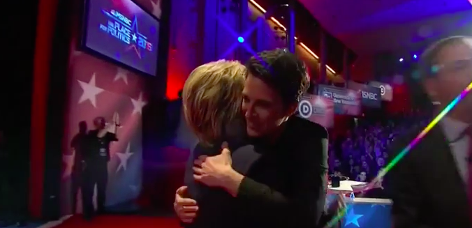 He must be compelled to relearn proper objectivity. For example, here is Rachel Maddow objectively hugging Hillary. See? Not a hint of bias. C'mon, Matt, what were you thinking? Or was thinking where you went wrong?