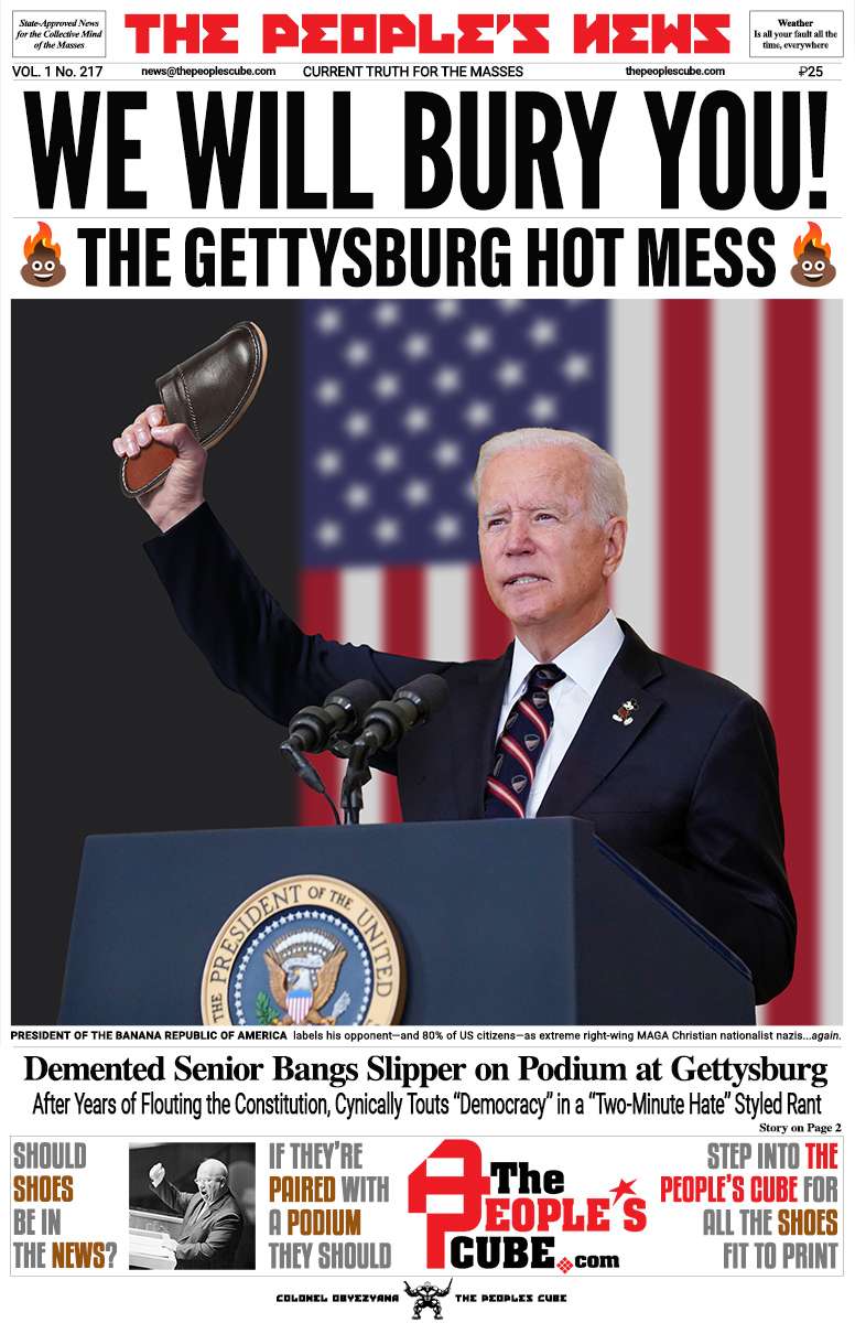 Once again, Joe pushes the ludicrous theme that he's the paragon of American values while "Trump's a nazi" and racist, transphobic, meat-eating, fossil-fuel using, immigrant-hating, schoolbook-banning, right-wing Christian nationalist MAGA extremists are terrorists bent on the destruction of "Our Democracy."