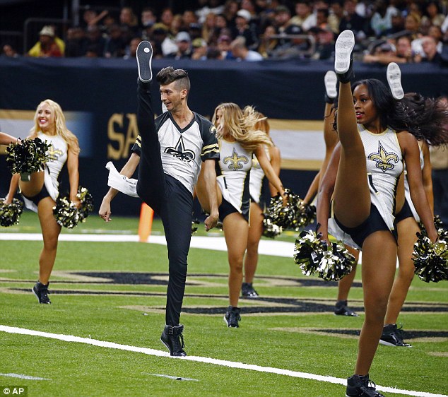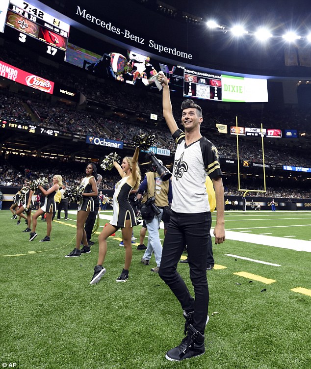 Jesse Hernandez, 25, stepped out as the first male Saintsation in the NFL team's history Friday night, wowing the crowd at the Mercedes-Benz Superdome in New Orleans, Louisiana.