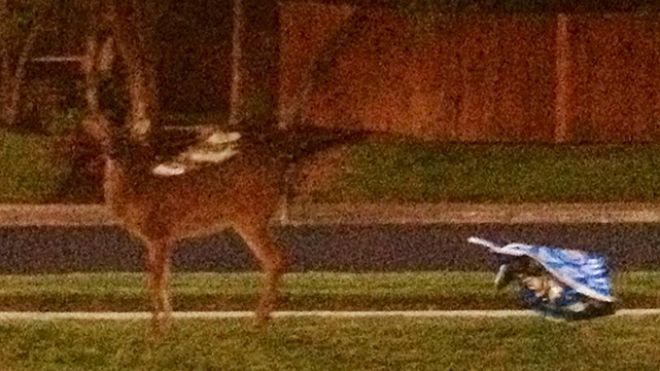 Texas couple snaps photo of deer destroying Obama front yard sign