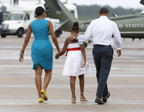 FLOTUS descended upon the Gulf beaches today to promote them as a great vacation spot for all families save her own.