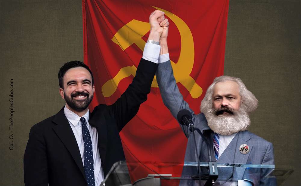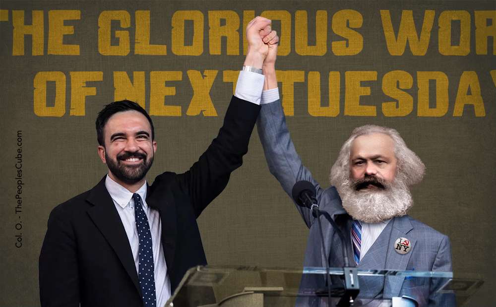 Karl Marx raises arms with the next Ayatollah of the Politburah, Zohran Mamdani in this undated non-AI photo.