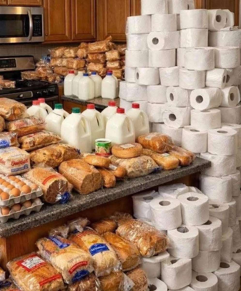 When in panic or in doubt, run around, scream and shout; but first stock up on all the toilet paper, eggs, milk and bread you can carry to make ritual French Toast.