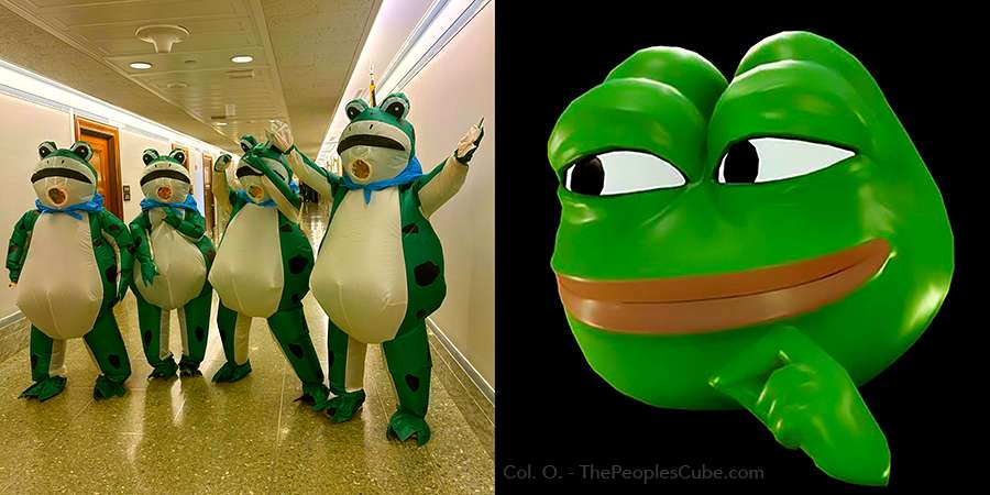 The irony? They looked like Pepe the Frog, a meme that started innocently around 2005 but was subverted by Leftards who styled him as a White supremacy, "alt-right" (whatever that means) symbol. This put a wry grin on Pepe's face: