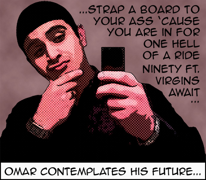 What you're asking of me, to be emotionally detached and think, is antithetical to the Five Pillars. Now if there's a sign you can point out that I can honk my horn at, I'm your man.