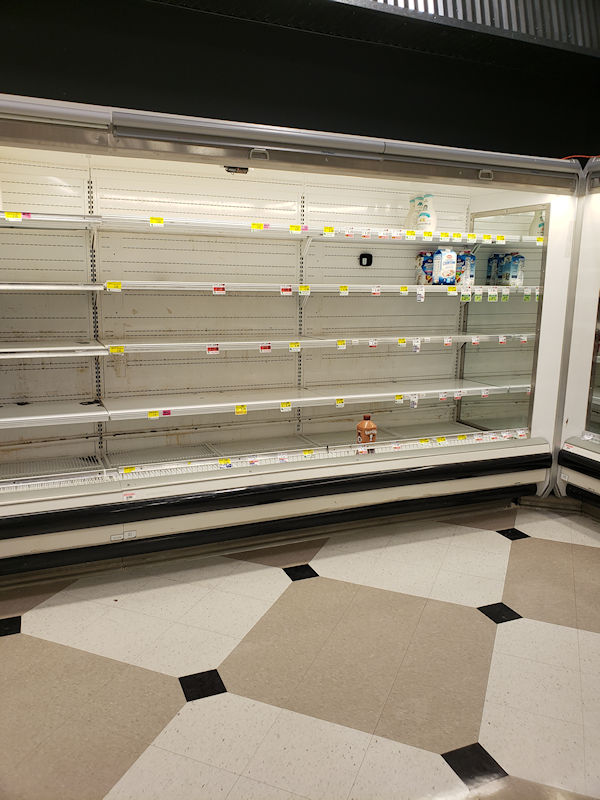 My butter selection looked like your butter selection. Thank God I went to Aldi and bought a few pounds last week. Here in PA, the government sets mandatory minimum milk prices, so we've never been out of that. People can't just buy up 5 $1.00 gallons of milk and freeze 4. The last time I saw a gallon of milk under 4 dollars here was when I was 12.