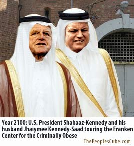 President Shabaaz-Kennedy and [his] [husband] toured the new Franken Center for the Criminally Obese in preparation for a visit by UN Secretary General Castro. The Center's Progressive barrier-free design enabled [Mr.] Castro's cryogenic chamber access to every section of the facility. The assembled dignitaries